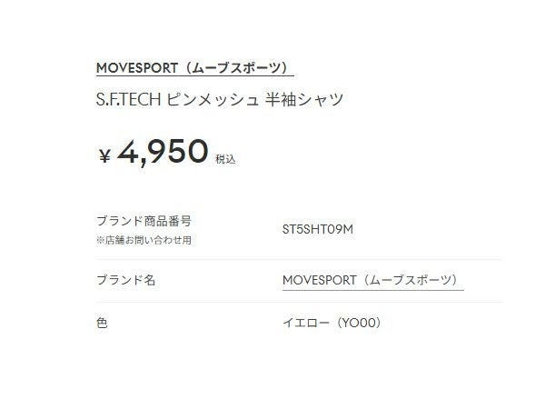 6. ムーブスポーツ MOVESPORT S.F.TECH エス.エフ.テック ピンメッシュ 半袖シャツ メンズ 春 夏 イエロー 黄色 スポーツ トレーニング 半袖 Tシャツ ST5SHT09M-YO00 アウトレット セール