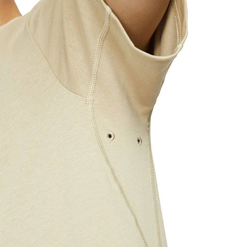 脇下の刺繍アイレット(通気孔)が通気性を高め、涼しい状態をキープ。