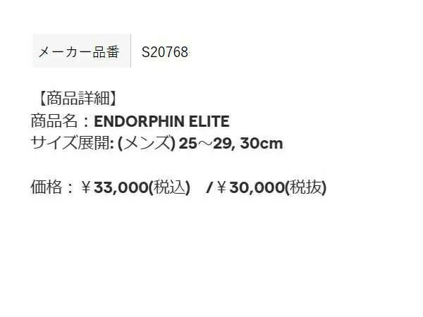 これまでのエンドルフィンシリーズからのインスピレーションを最大限に受けており、機能性が多数詰まった一足となっている。