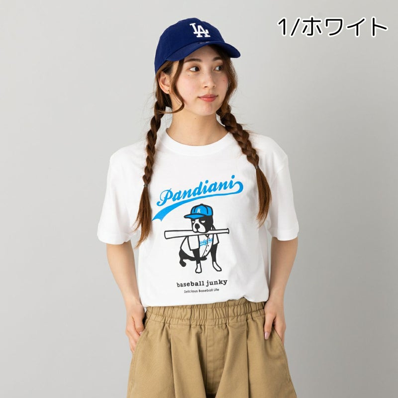 ベースボールジャンキー baseball junky パンジャース 半袖TEE Tシャツ 野球 カジュアル 綿100% 白 ホワイト 青 ブルー 犬 動物 フレンチブルドッグ 春 夏 BBJ25001
