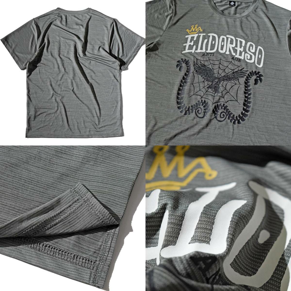 6. エルドレッソ ELDORESO Anti Age Tee アンチエイジ Tシャツ メンズ レディース ユニセックス ポリエステル ワイン グレーホワイト スポーツ トレーニング 半袖 Tシャツ ランニング 速乾 ドライ E1015415