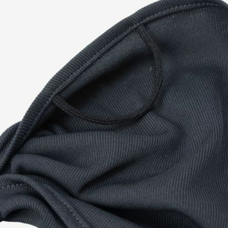 伸縮性のあるフライス編みを採用したヘッドバンド。耳にかけられるゴム付きで、マウスカバーとしても使用可能な汎用性の高いアイテム。