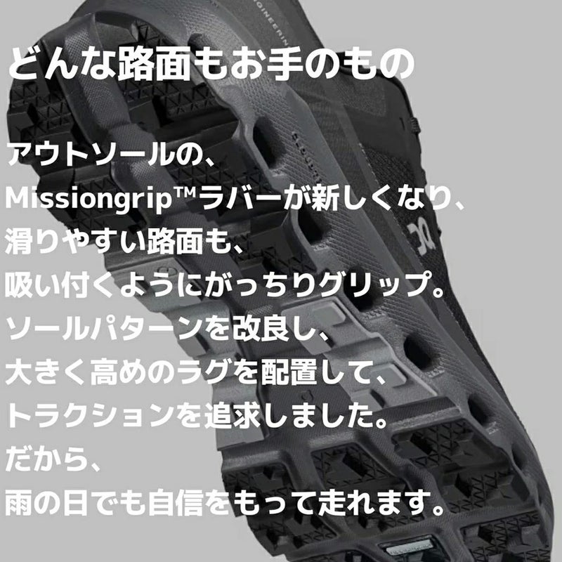 ●粘着性の高いMissiongripアウトソールが路面を問わずトラクションを発揮