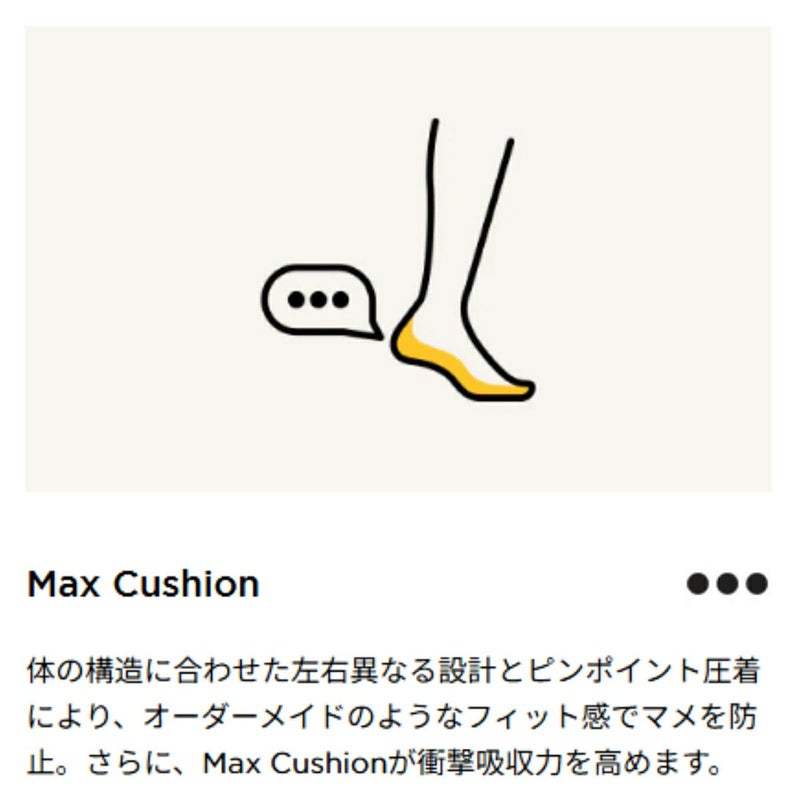 マメができるのを防ぎ、Max Cushionで衝撃から足を守ります。