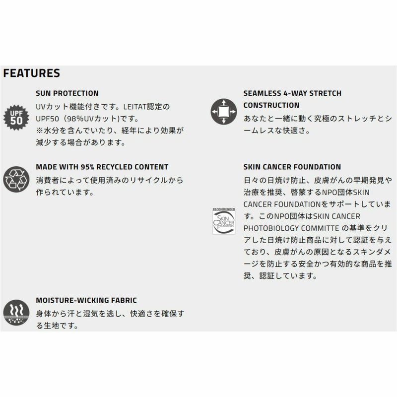 リサイクルプラスチックボトルから作られ、UPF50の日焼け防止効果があり、12種類以上の違った着用方法があります。