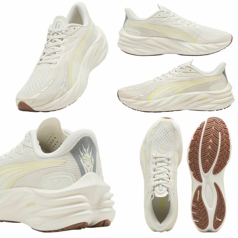 「ヴェロシティ 4」は、すべてのランナーのために設計された次世代ランニングシューズ。記録更新を目指す日も、気ままなジョグの日も、あなたの足元に確かなサポートと軽やかな推進力を提供します。これまでで最も軽量なベロシティは、フルレングスのNITROFOAMミッドソールを搭載し、驚異のエネルギーリターン85%を実現。反発力とクッション性を両立し、長距離でも疲れにくい快適な走りをサポートします。アッパーにはエンジニアードメッシュを採用し、通気性を大幅に向上。さらに、必要な箇所にPWRTAPEを配置することで、軽量ながらもしっかりとしたサポート性を確保。足首周りにはロールカラー構造を採用し、フィット感と快適性を高めています。アウトソールにはPUMAGRIPを使用し、濡れた路面や不整地でも優れたグリップ力を発揮。耐久性にも優れており、最大800kmの走行に対応します。また、アッパーには30%以上のリサイクル素材を使用し、環境にも配慮。サステナブルな選択をしたいランナーにもぴったりの一足です。