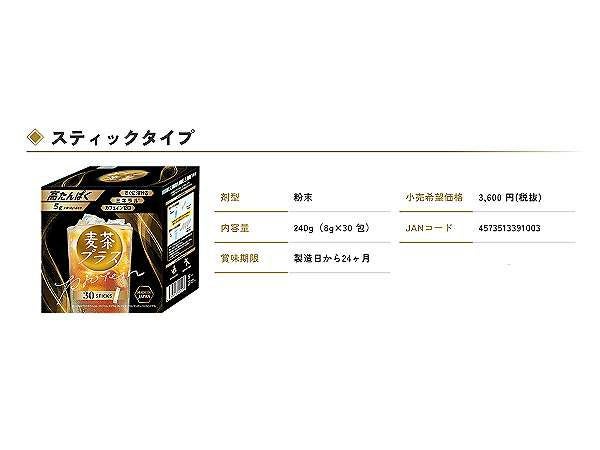 大麦・米たんぱく濃縮物(アメリカ製造)、麦茶エキスパウダー(焙煎麦)、コラーゲンぺプチド(豚肉を含む)、グリシン