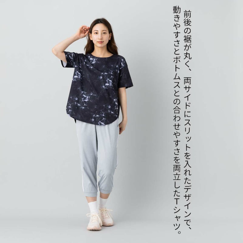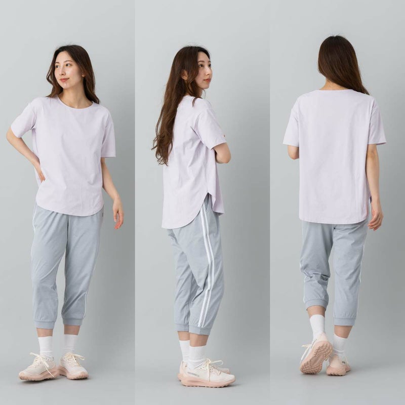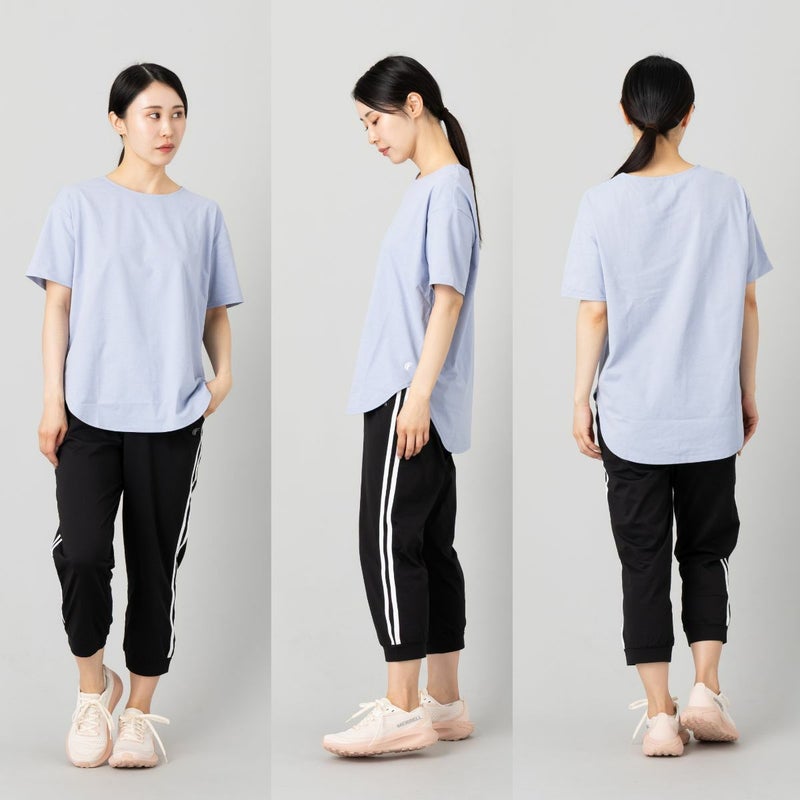 前後の裾が丸く、両サイドにスリットを入れたデザインで、動きやすさとボトムスとのレイヤードのしやすさを両立。