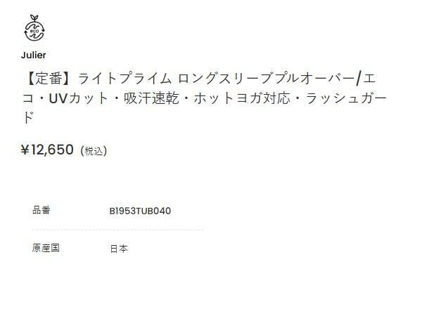 ジュリエ ヨガ ヨガウェア トップス 長袖トップス 無地トップス ホットヨガ ランニング ピラティス UVカット ラッシュガード エコ エコフレンドリー