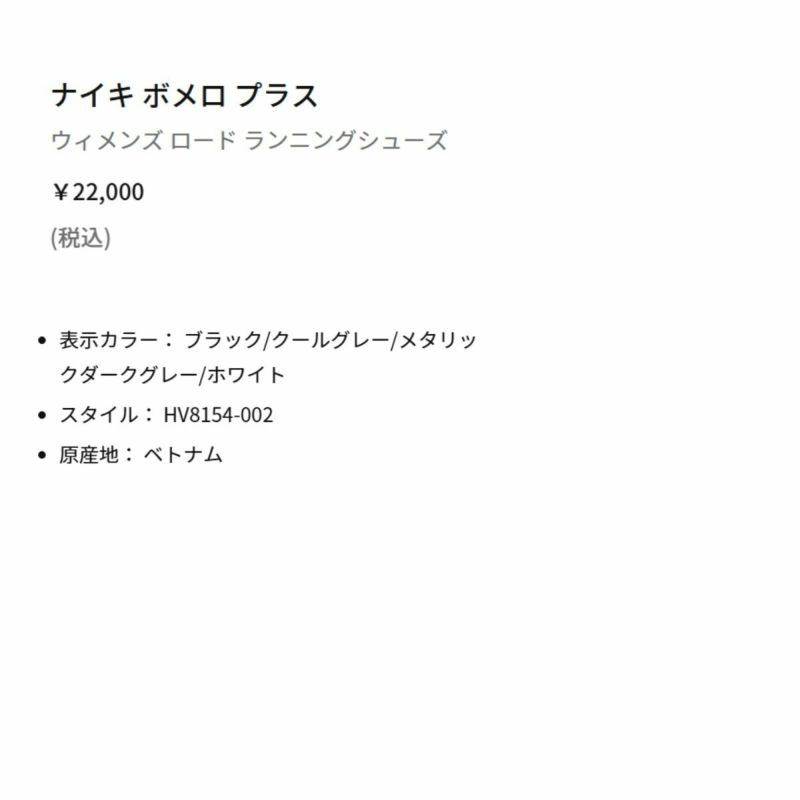 ボメロ プラスが、最高のクッショニングを次のレベルへと引き上げます。 業界屈指の反発力を誇るフルレングスのZoomXフォームを高く重ねたデザインが、毎日のランで抜群に快適な履き心地を実現。 さらに、柔らかく通気性に優れた糸を使用したエンジニアードメッシュのアッパーで、快適なフィット感が得られます。