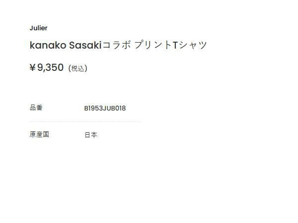 「Kanako Sasaki×JulierコラボプリントTシャツ」