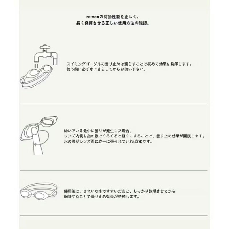 re:non機能とはレンズ内側をスッとこするだけでくもり止め機能を