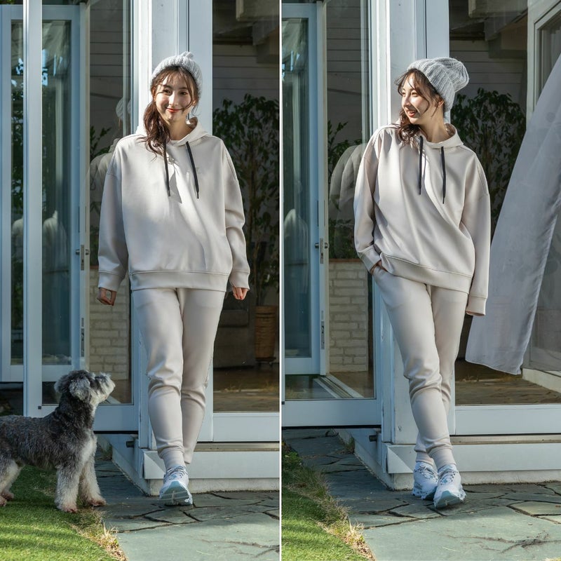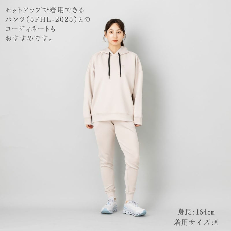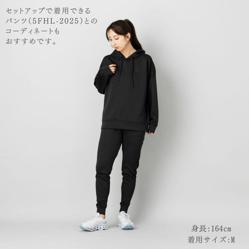開けることでシルエットの変化を楽しめたり、動きやすさや通気性を高めることができます。カジュアルウェアとしてはもちろん、ジムへの行き帰りや軽い運動時にも適しています。セットアップで着用できるパンツ(5FHL-2025)とのコーディネートもおすすめです。