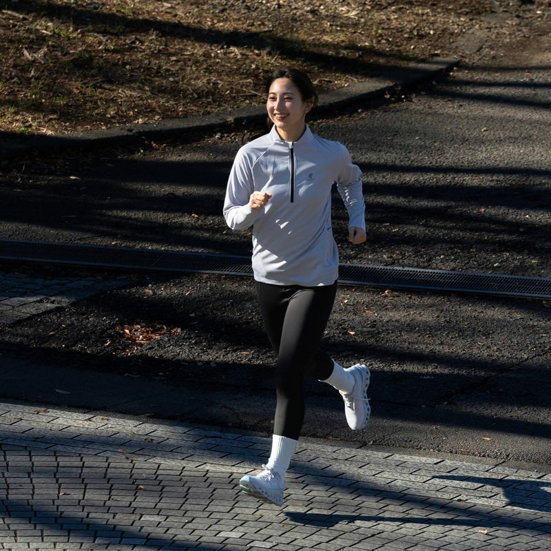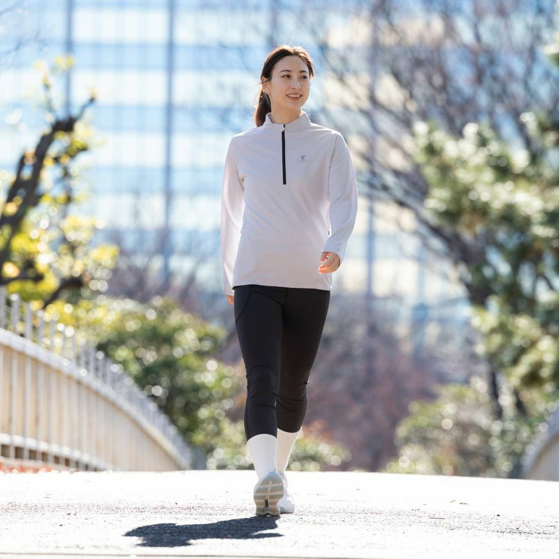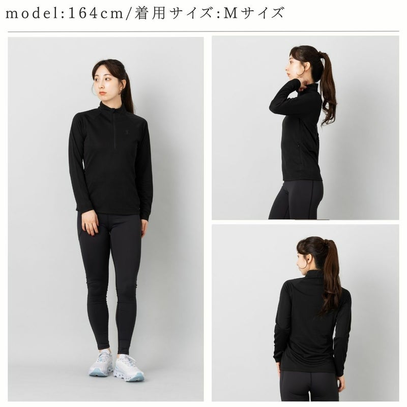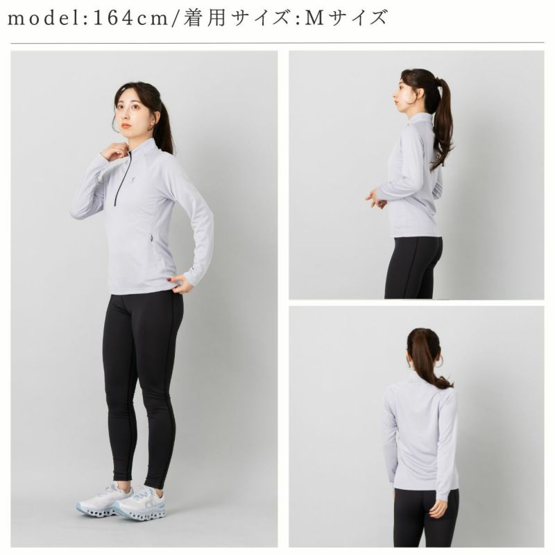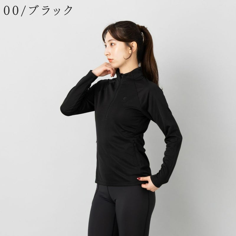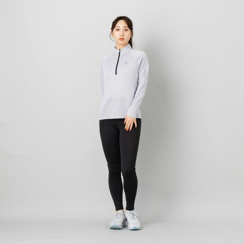 吸水速乾、UVケア機能付きのロングTシャツで首元にファスナーが付いており、体温調節や着脱のしやすさに優れています。