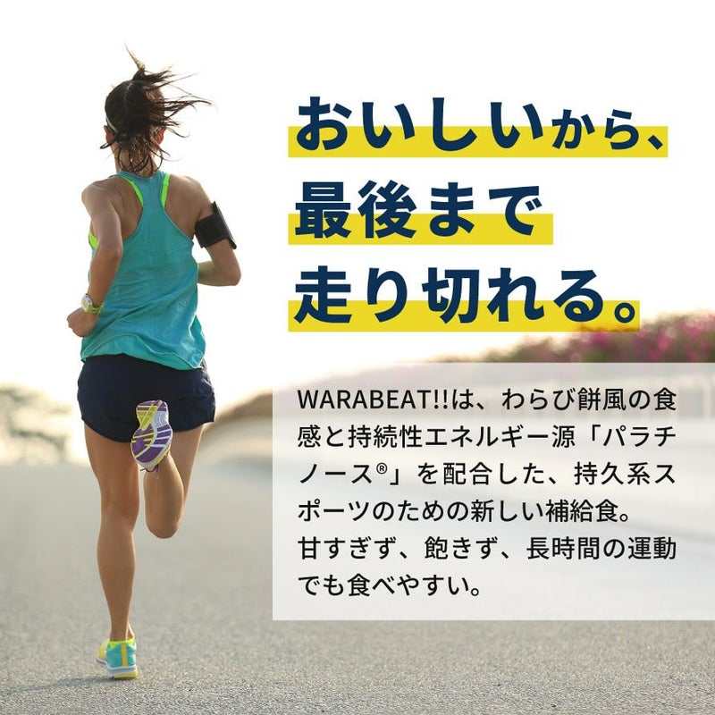 「ワラビート(WARABEAT!!)」は、従来のスポーツ補給食・エネルギージェルとは一線を画す「新しい補給のかたち」をめざした商品です。
