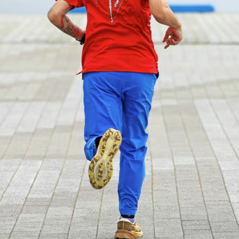 裾に向かって細くなるテーパードシルエットを採用したフルレングスのランニングパンツです。