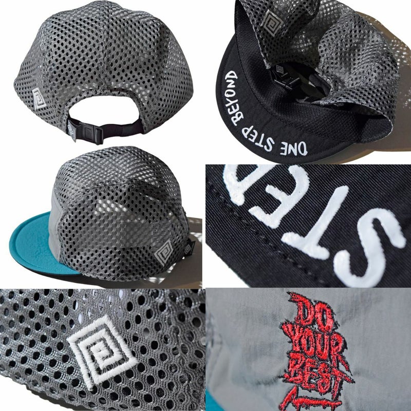 ブリム裏にも「One Step Beyond」のワードを手書き風のプリント配し、ツバを跳ね上げて被った際のアクセントになるように仕上げました。