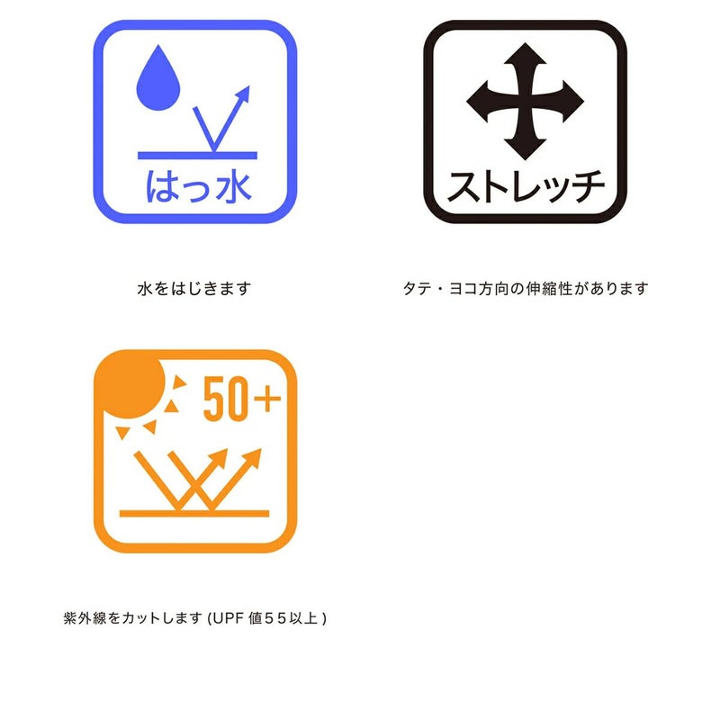 はっ水、2WAYストレッチ、UV CUT(UPF50+)。