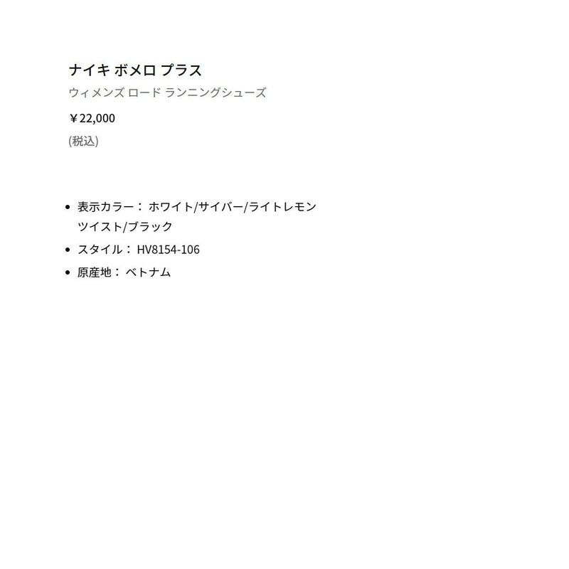 最高のクッショニングを次のレベルに引き上げたボメロ プラス。業界屈指の反発力を誇るフルレングスのZoomXフォームを分厚く積み重ねたデザインが、毎日のランニングに抜群に快適な履き心地を提供。さらに、柔らかく通気性に優れた糸を使用したエンジニアードメッシュのアッパーで、快適なフィット感を実現しました。