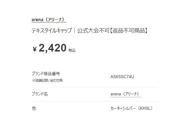 6. アリーナ テキスタイルキャップ ユニセックス arena Textile Cap