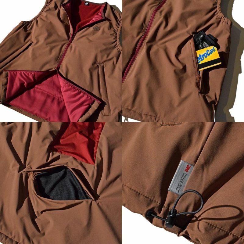 寒い季節のランニングシーンを快適にする、高機能中綿素材「3Mシンサレート」を中材に使用したジップアップベスト。