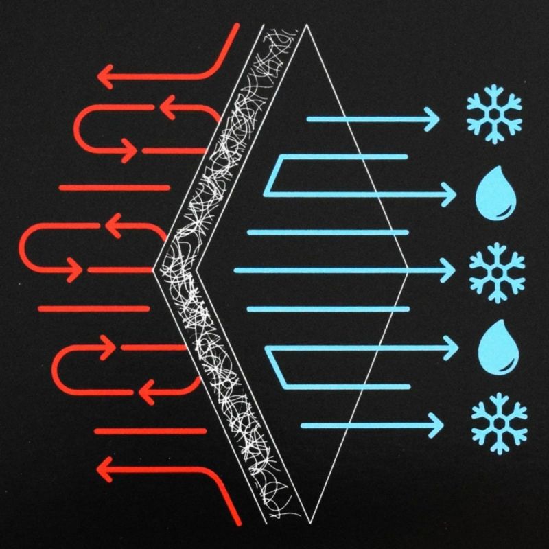 中材の高機能中綿素材「3Mシンサレート」は、微細な繊維構造により優れた断熱性を実現しながらも見た目に薄く、体の熱を外に逃がさずに湿気を通すという特性を持っています。