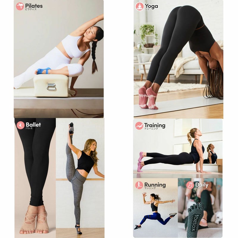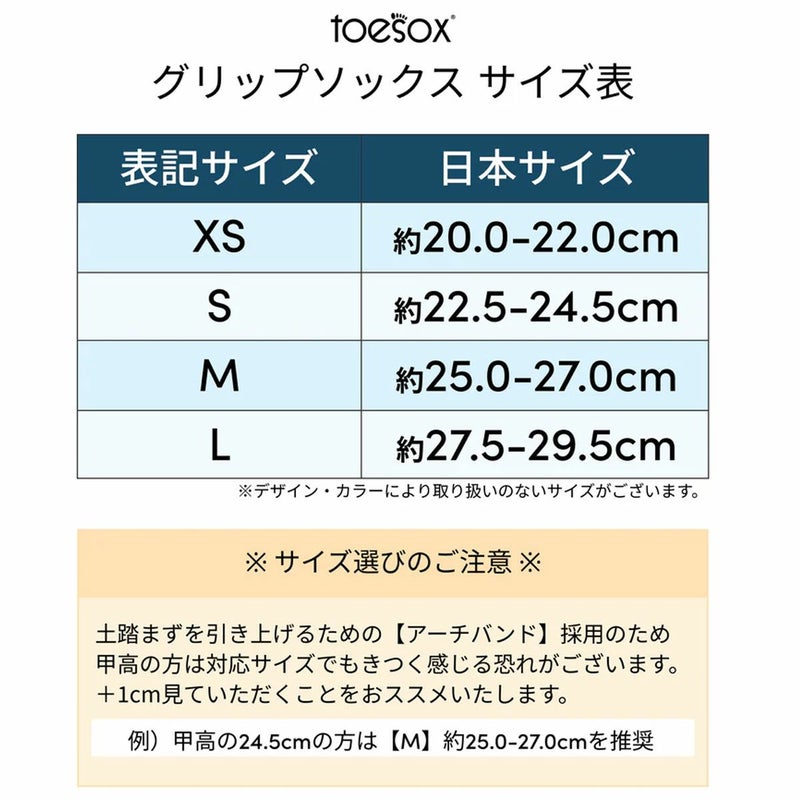 toesox独自開発のシリコングリップが滑りを防ぎ、