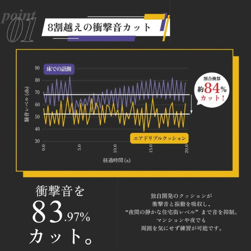 衝撃音を84%カット。独自開発のクッションが衝撃音と振動を吸収し、