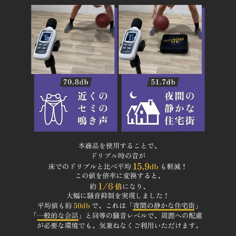 エアドリブルは、静かにドリブルを練習するために、開発されたものです。