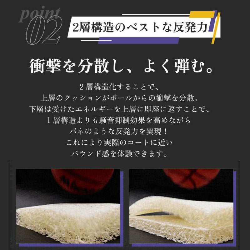 2層構造化することで、上層のクッションがボールからの衝撃を分散。