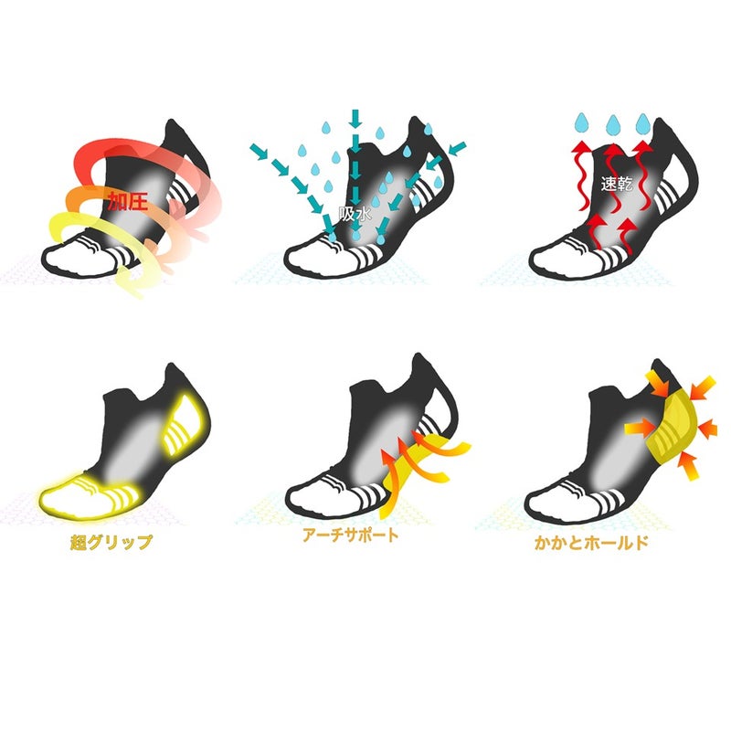 ③足裏の超グリップ力でシューズ内のスベリを軽減