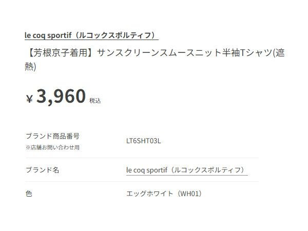 6. ルコック サンスクリーンスムースニット半袖Tシャツ(遮熱) 芳根京子着用 レディース le coq sportif Sunscreen Smooth Knit Short Sleeve T-Shirt (Heat-Shielding)