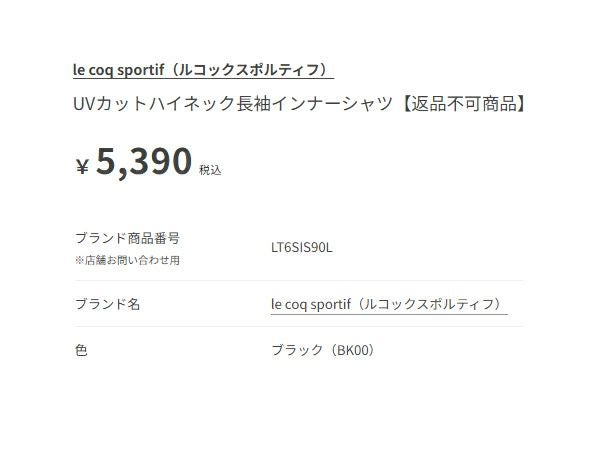 6. ルコック UVカットハイネック長袖インナーシャツ レディース le coq sportif UV Protection High Neck Long Sleeves Inner Shirt