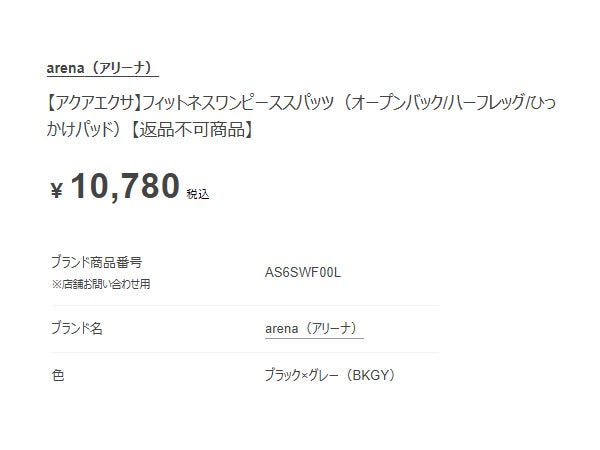 6. アリーナ アクアエクサ フィットネスワンピーススパッツ(オープンバック ハーフレッグ ひっかけパッド) レディース arena AQUA EXA Fitness One-Piece Spats (Openback Halfleg Hookpads)