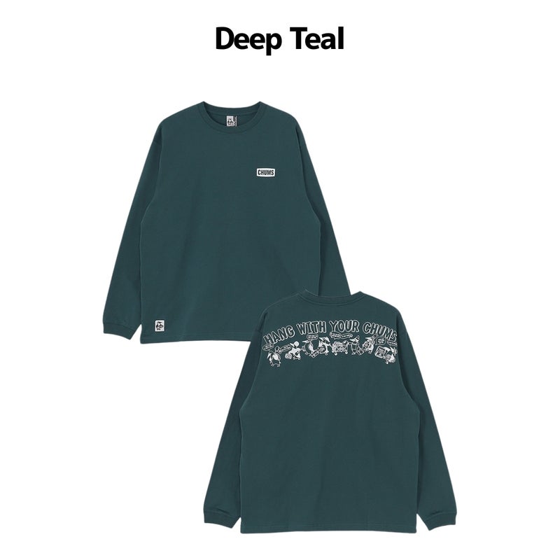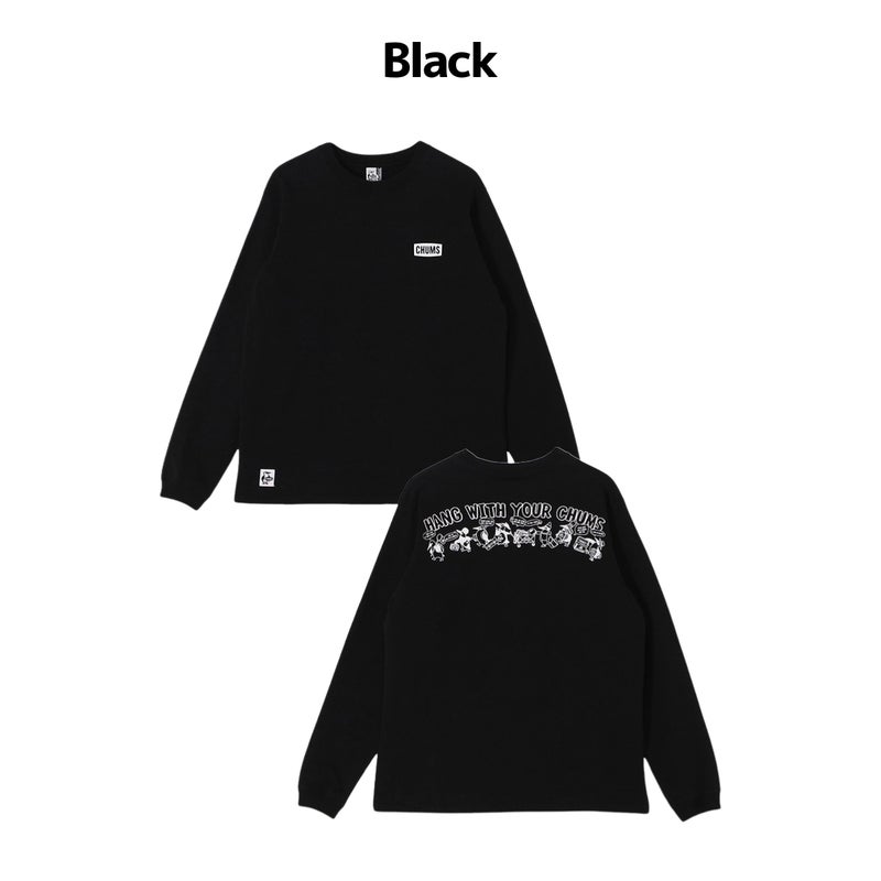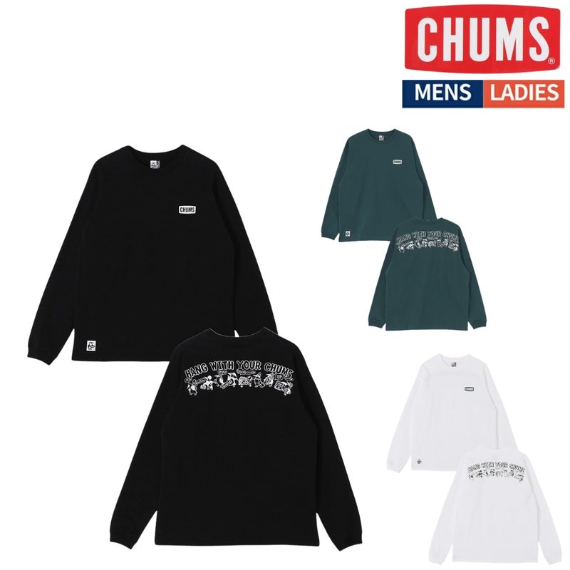 左胸にはCHUMSロゴをワンポイントで配置し、バックには虫取り網や籠を手にしたブービーバードたちが昆虫探しに出かける、