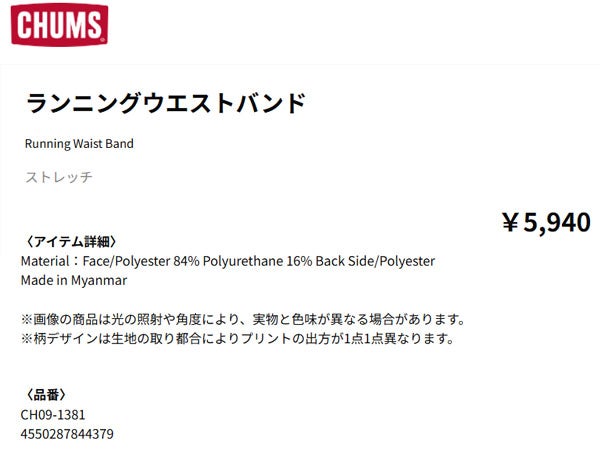5. チャムス ランニングウエストバンド ユニセックス CHUMS Running Waist Band CH09-1381