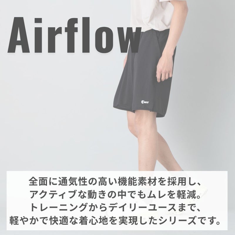 エアフローショーツは快適なトレーニングをサポートする、通気性に優れたハーフパンツ。
