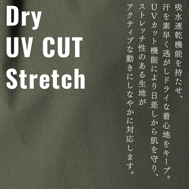 素材には吸水速乾機能を持たせ、汗を素早く逃がしドライな着心地をキープ。UVカット機能により日差しから肌を守り、ストレッチ性のある生地がアクティブな動きにしなやかに対応します。