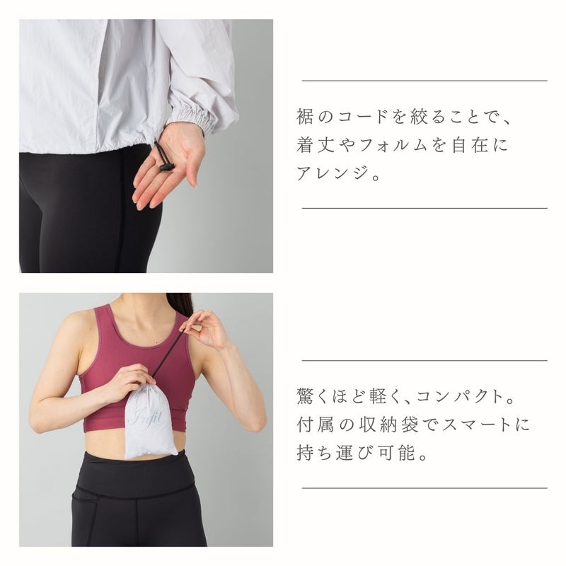 裾のドローコードを絞ることで、着丈を短く見せたり、