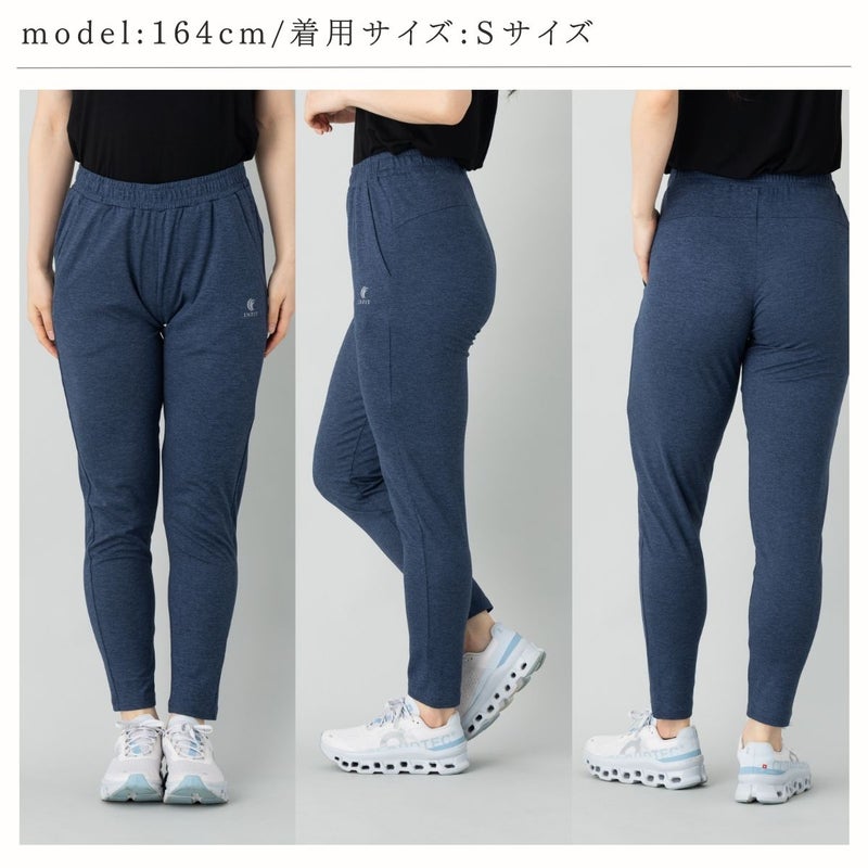 脚のラインを拾いすぎない程よいスリムシルエットは、ジムでのワークアウトはもちろん、リラックスしたいおうち時間やワンマイルウェアとしても最適。