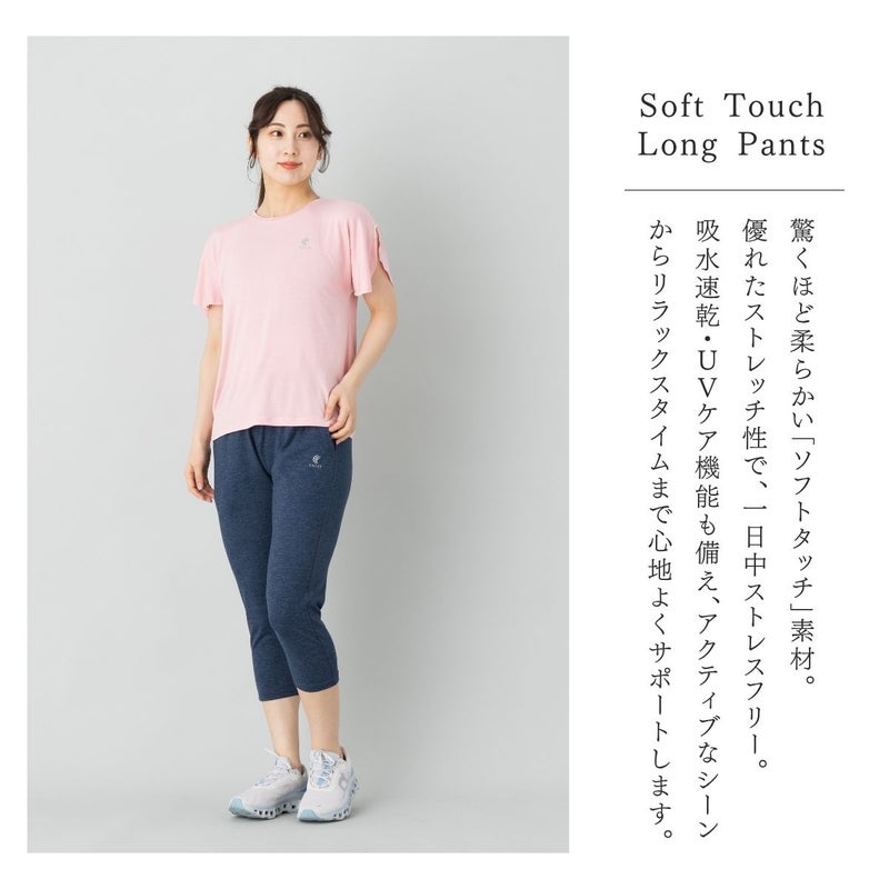 なめらかな肌触りと、優れた伸縮性を両立した「ソフトタッチ」素材のクロップドパンツ。