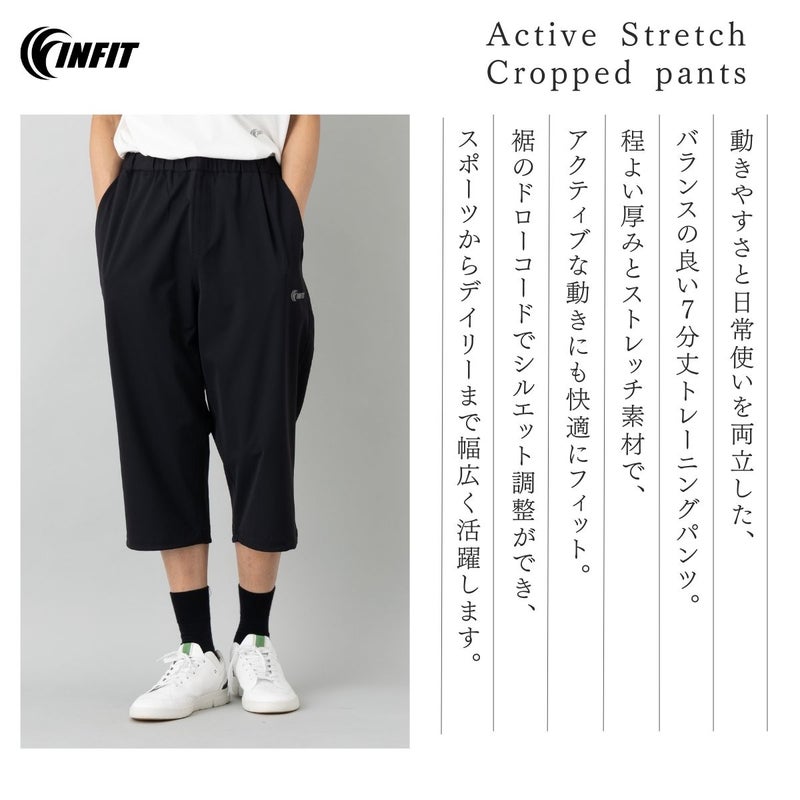 スポーツからデイリーまで自然にフィットする、INFITのマルチユースな7分パンツです。