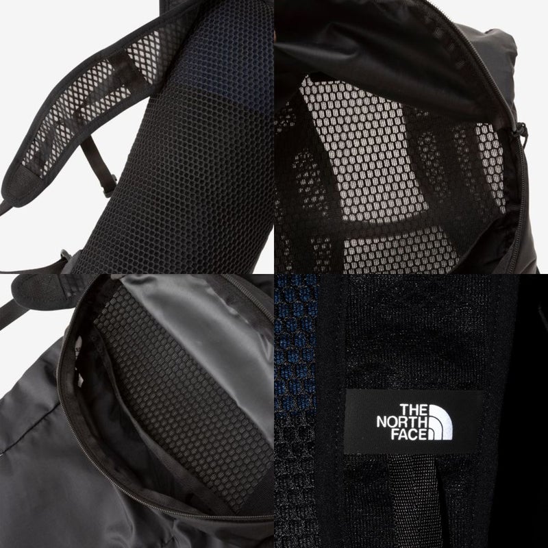 背面とショルダーハーネスには通気性に優れる軽量エアメッシュを配置。横ユレやブレが少ない背中上部に荷物が収納できる逆三角型。