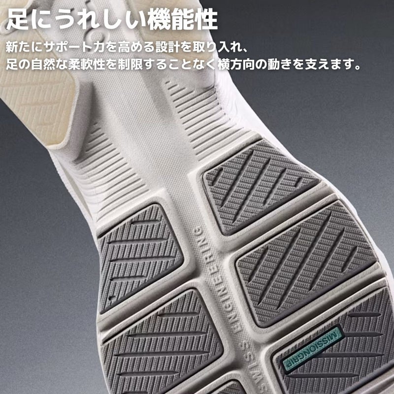 人間工学に基づいてつま先部分を広めに設計し、安定した着地と足運びを可能に