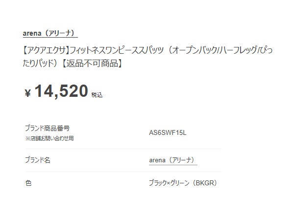 6. アリーナ アクアエクサ フィットネスワンピーススパッツ(オープンバック ハーフレッグ ぴったりパッド) レディース arena AQUA EXA Fitness One-Piece Spats (Openback Halfleg Perfectpad)