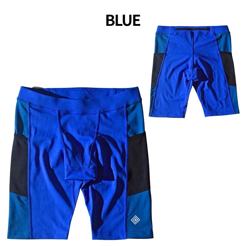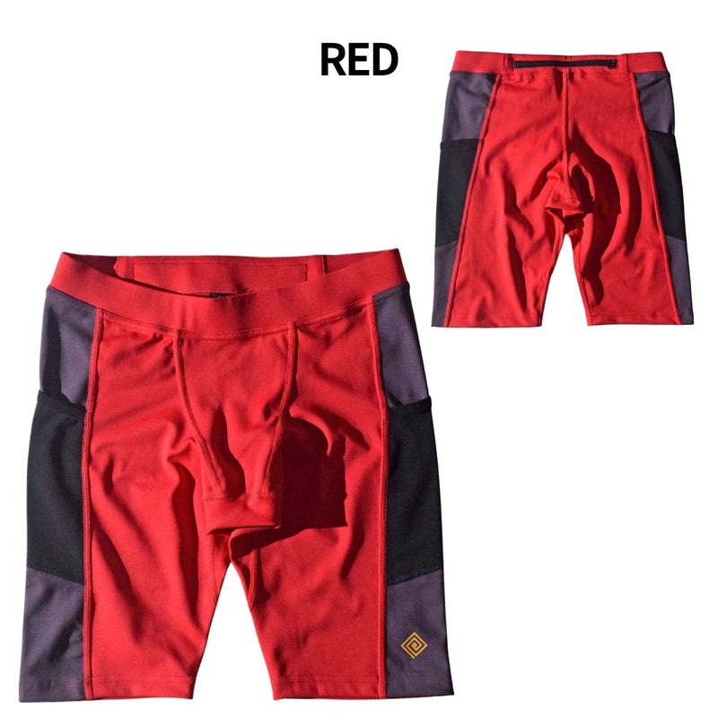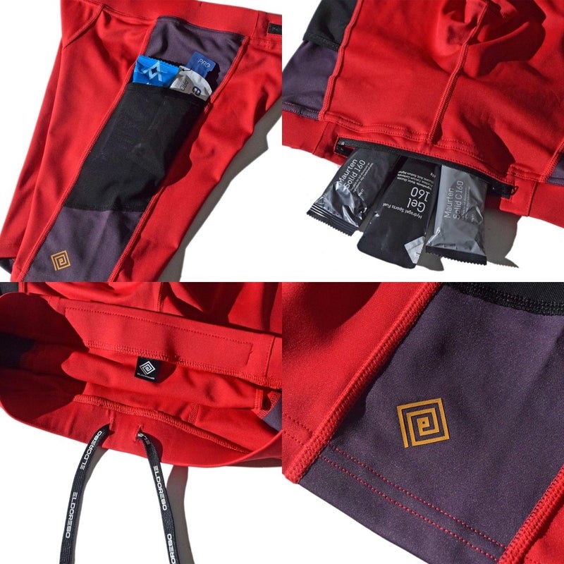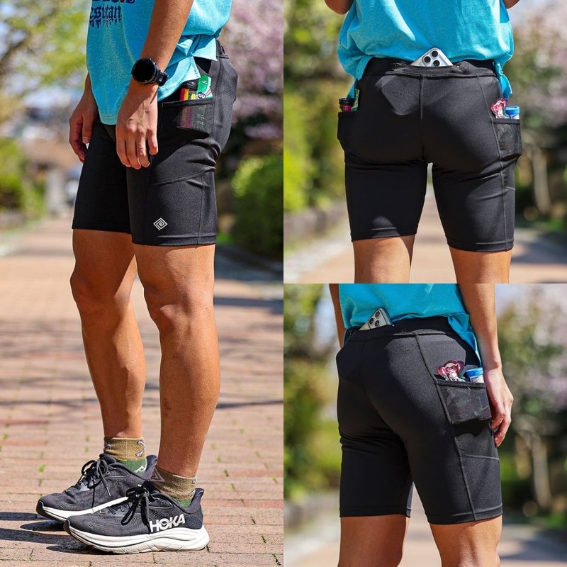ジェルなどの小物の収納に便利なジップ付きの腰ポケットに加え、左右の腿にもメッシュポケットを搭載した機能的な仕様です。