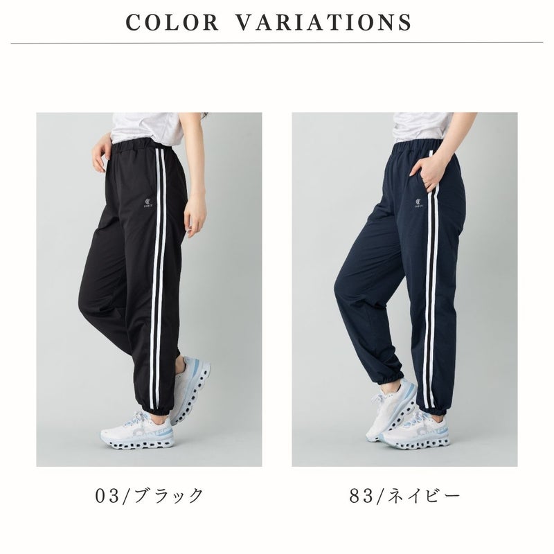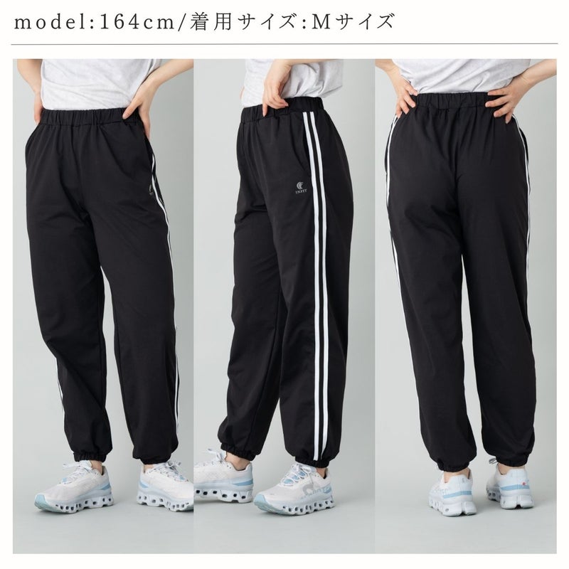 両サイドにホワイトのラインが入っており、スポーティーな印象を与えると同時に、脚をまっすぐ長く見せる視覚効果があります。