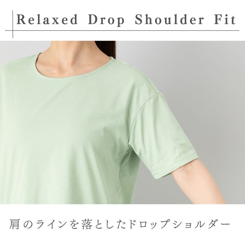 肩のラインを落としたドロップショルダーと、お尻周りをふんわり隠してくれる丈で気になるラインを拾いすぎず、一枚で安心して着用できるデザインです。