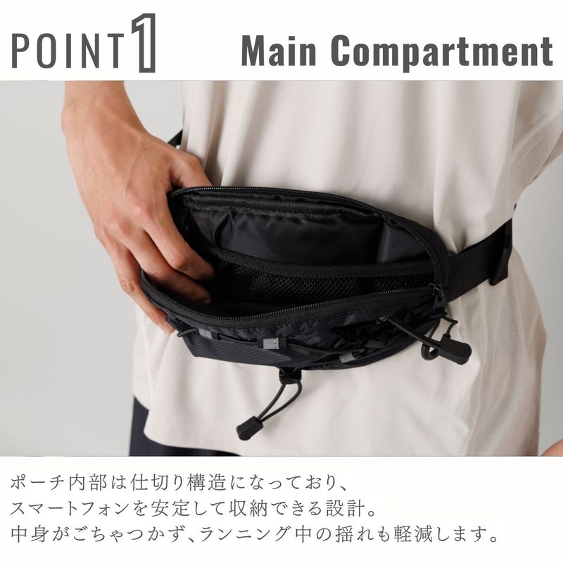 機能性と安定性を追求した、マルチユース仕様のランニングポーチ。
