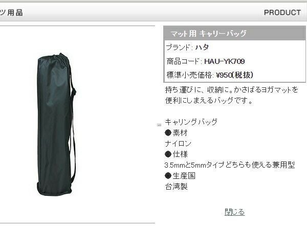 5. ハタ:ヨガストレッチマット用キャリングバッグ【HATAS キャリングバッグ】